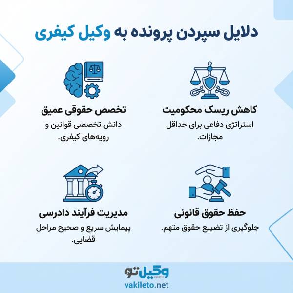 تجربه، مهارت در دادگاه، اخلاق حرفه ای، مهارت مذاکره و توصیههای مثبت دیگران از ویژگیهای مهم وکیل کیفری است.