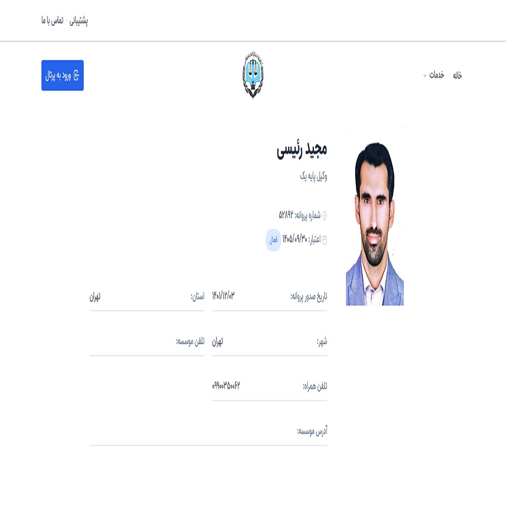 آقای مجید رئیسی ، وکیل پایه یک دادگستری و با بیش از ۱۵ سال تجربه حقوقی و وکالت در محاکم قضایی و دادگستری، از موفق ترین و بهترین وکلای تهران هستند. ایشان از دانش آموختگان ممتاز دانشگاه علوم قضایی تهران هستند که علاوه بر تسلط علمی، به رویه عملی در محاکم نیز مسلط می باشند و ابتدا پرونده را به طور کامل بررسی نموده و فقط در صورت احتمال موفقیت زیاد، قبول وکالت می نمایند.