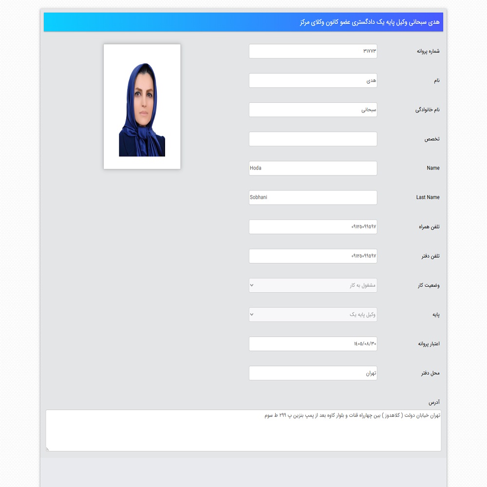 سابقه وکالت تخصصی: ارائه مشاوره و وکالت به اشخاص حقیقی و حقوقی داخل و خارج از کشور، با تکیه بر دانش و تجربه در زمینههای مختلف حقوقی.