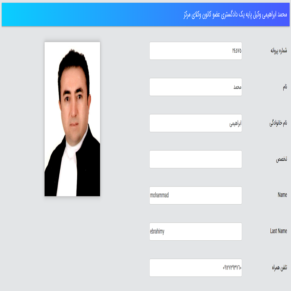 وکیل محمد ابراهیمی وکیل پایه یک دادگستری می باشند. ایشان بیش از 10 سال سابقه وکالت دارند و هم‌زمان با پیگیری پرونده‌های قضایی به موکلین خود مشاوره حقوقی نیز ارائه می‌دهند.