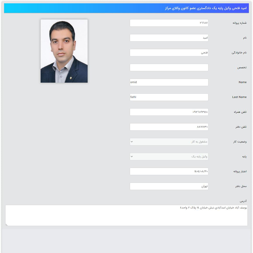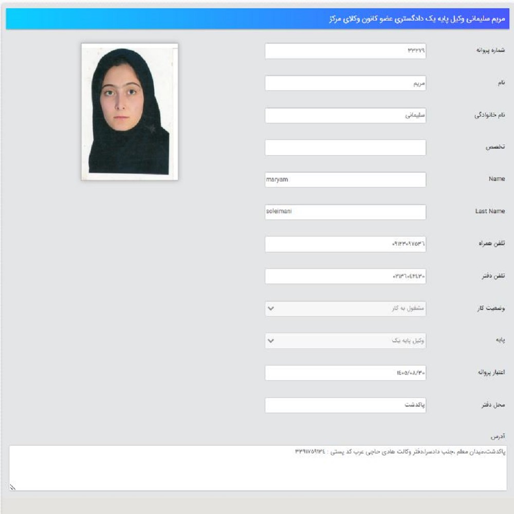 | نام وکیل | شماره تماس | آدرس |