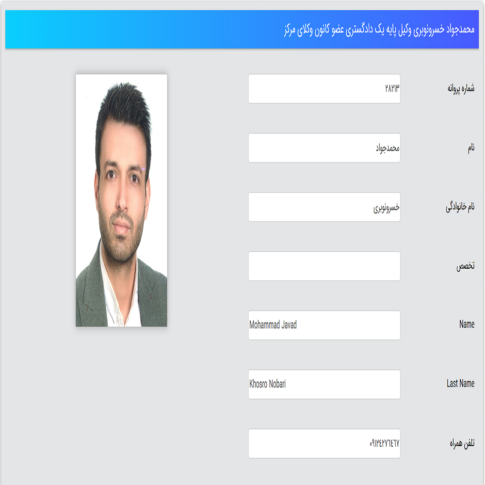 وکیل پایه یک دادگستریمحمد جواد خسرو نوبری وکیل پایه یک دادگستری می باشند. ایشان در زمینه دعاوی های تجاری، خانواده، کیفری، ثبتی، ملکی، طلاق و غیره تخصص داشته و به عنوان بهترین وکیل در یوسف آباد معرفی شده است. ایشان دارای سوابق کاری و درخشان در زمینه های مختلف حقوقی است و دارای نمونه پرونده های موفق بسیاری هم می باشد.